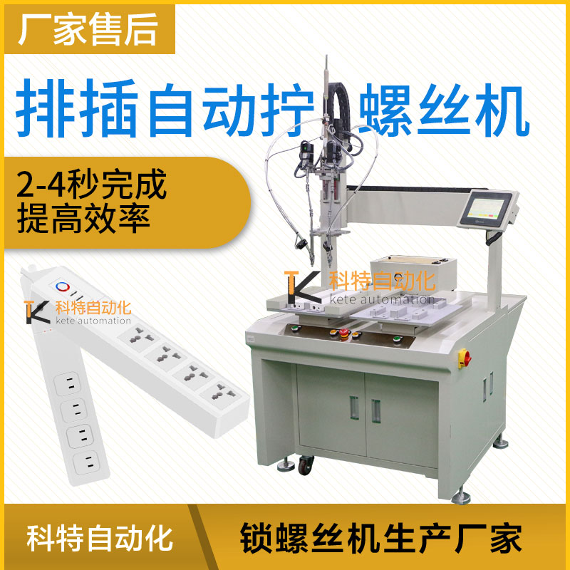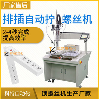 那么排插在生產(chǎn)線進行大批量產(chǎn)品生產(chǎn)、加工、裝配時,涉及到螺絲安裝的時候,需要人工手工完成,人工不僅需要對工件進行夾緊定位,還需要人工操作提供螺絲、對螺絲進行定位和操作手動擰螺絲工具,對操作人員的技術(shù)方面難度加大了一點,同時還會降低加工效率,并且也帶來了大量人工成本的提高等,針對這一問題,科特自動化根據(jù)產(chǎn)品設(shè)計一臺自動加擰緊工螺絲設(shè)備可以在流水作業(yè)時,自動輸送、自動供料、自動夾緊工件、自動分螺絲方向、自動定位、自動找正螺孔、自動扭緊的自動加工螺絲設(shè)備,以解決人工完成上述操作帶來的產(chǎn)品一致性差、操作效率低以及人工成本高的問題。 排插的外殼體需8顆螺絲鎖付,螺絲類型為內(nèi)十字圓頭螺絲,為提高效率。